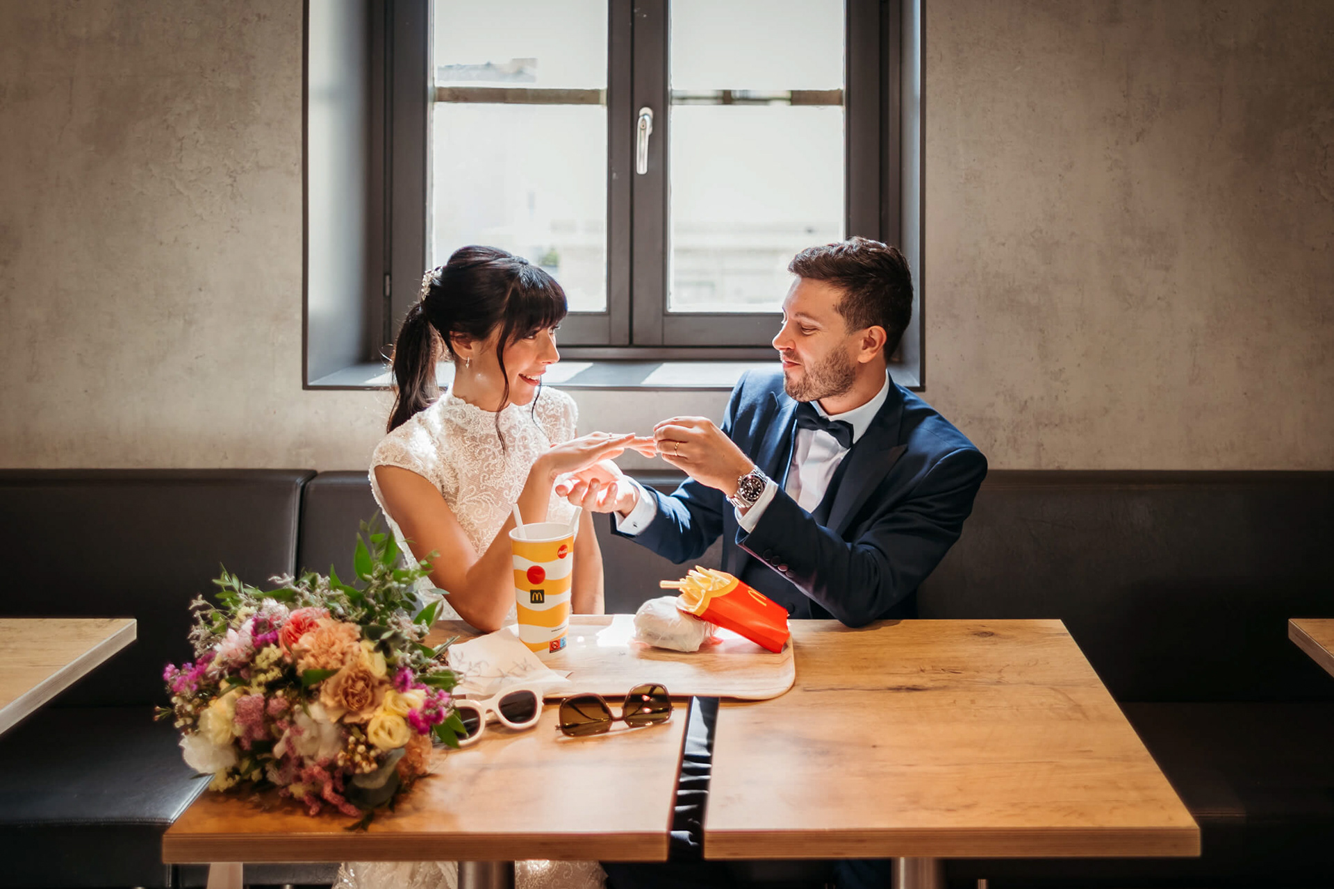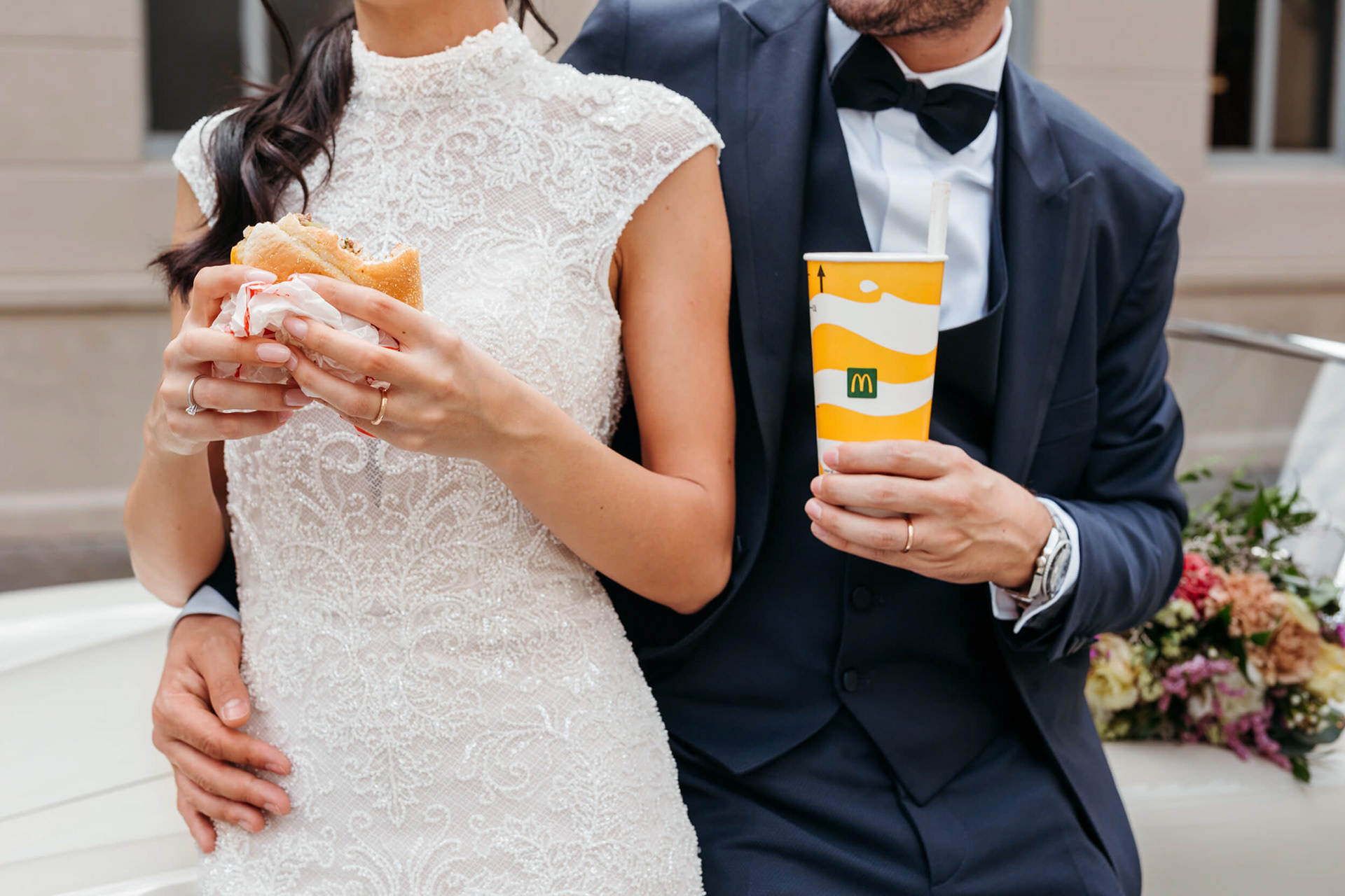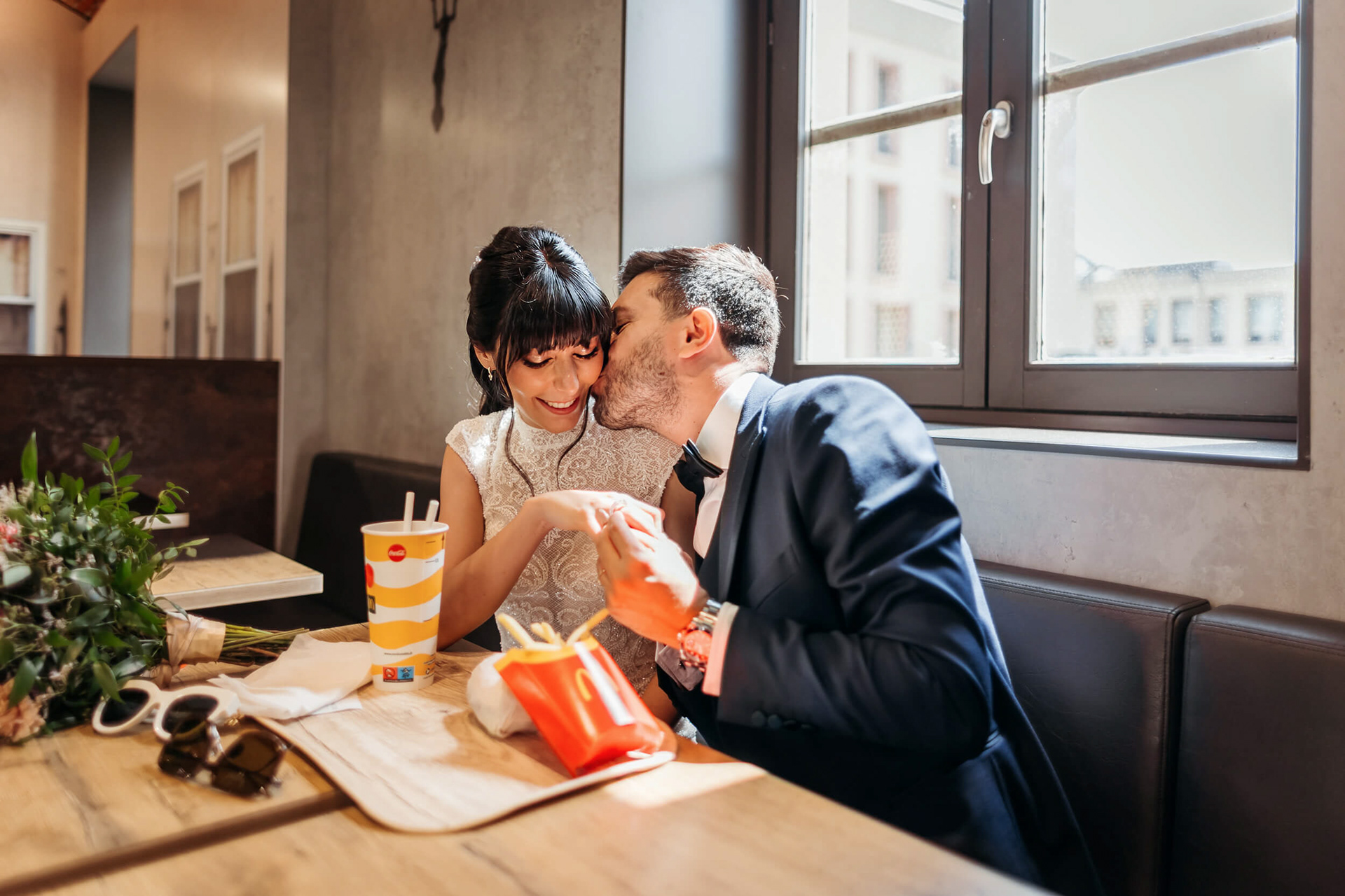 Si sono conosciuti in un McDonald’s nel centro di Torino, ed è lì che hanno scelto di tornare, in abiti da sposi, per chiudere la giornata in modo personale e autentico.