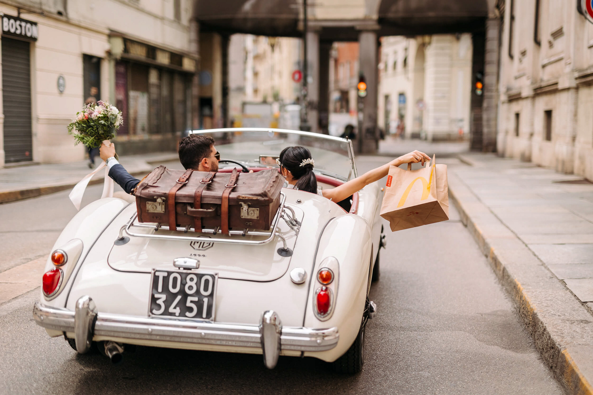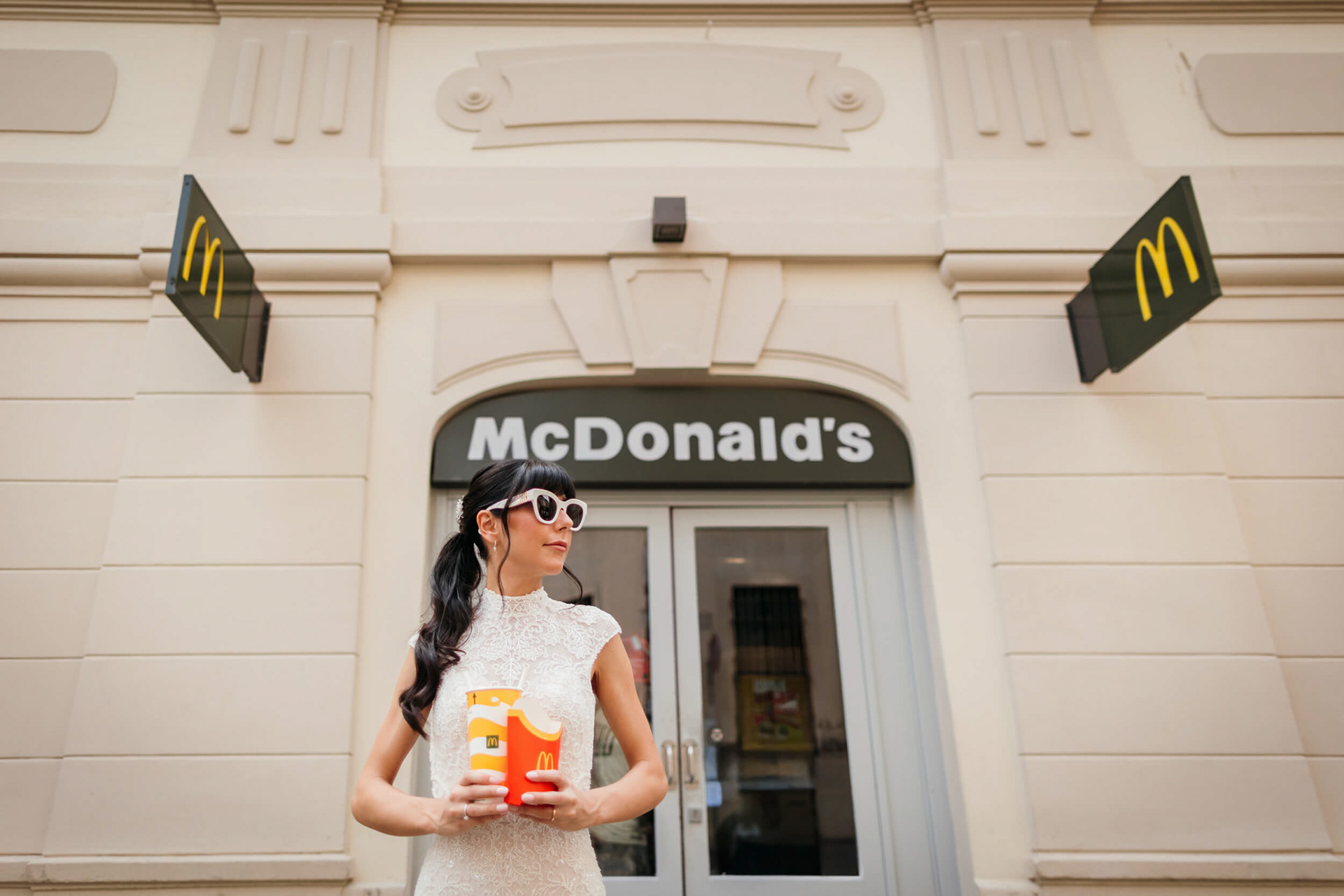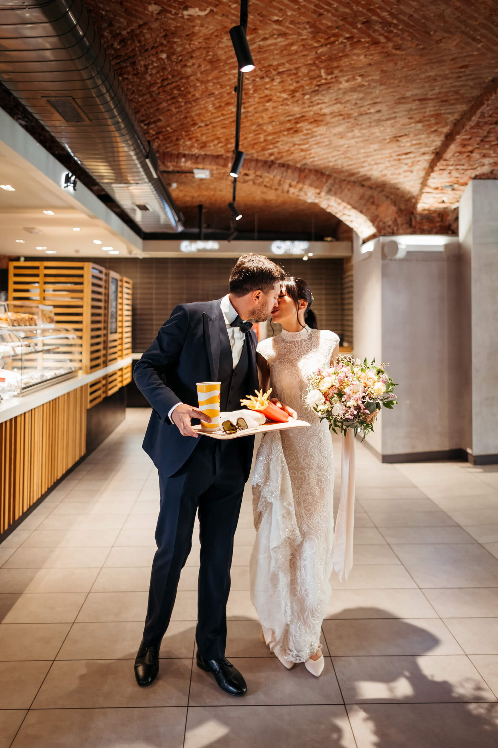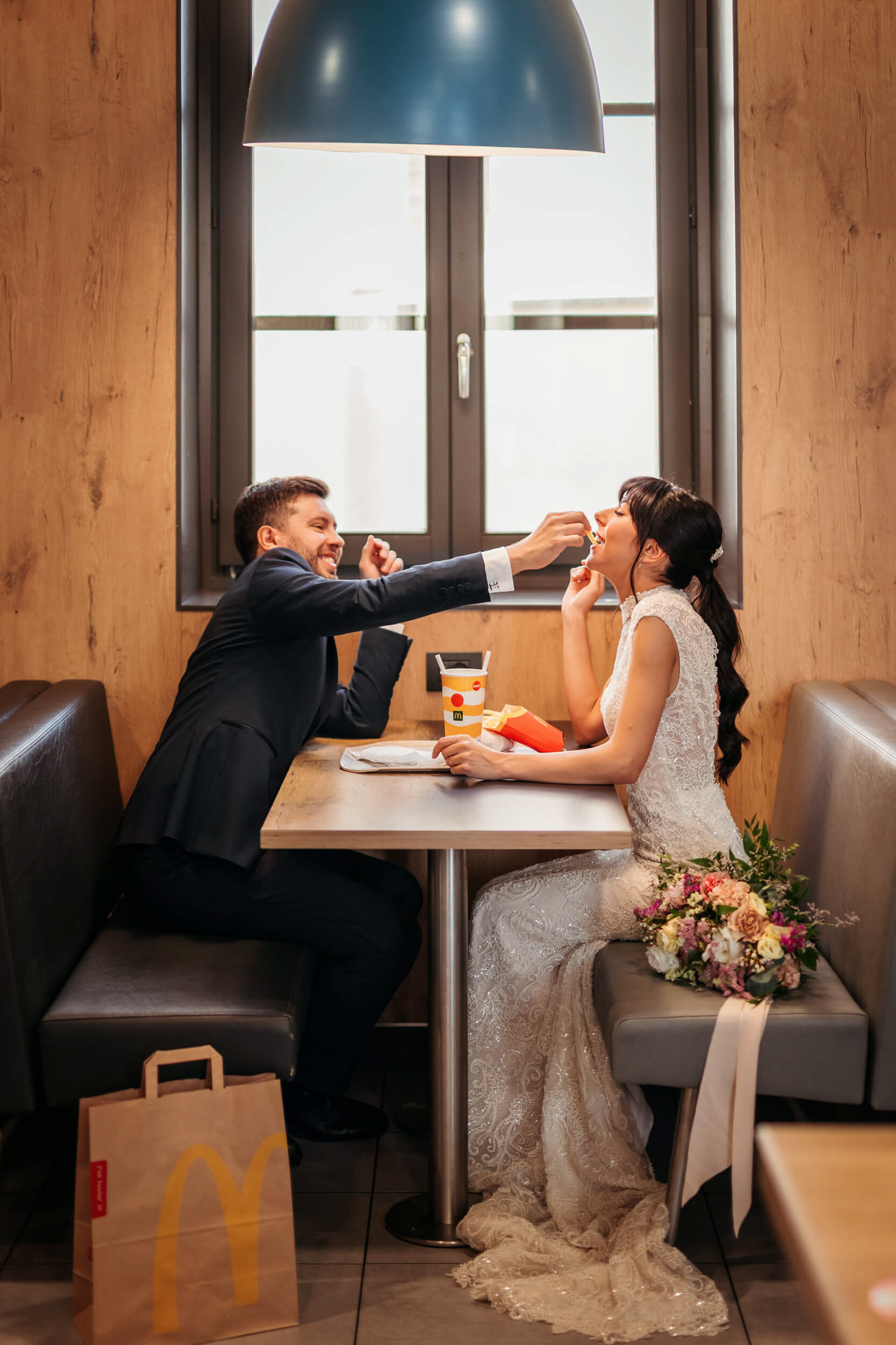Si sono conosciuti in un McDonald’s nel centro di Torino, ed è lì che hanno scelto di tornare, in abiti da sposi, per chiudere la giornata in modo personale e autentico.