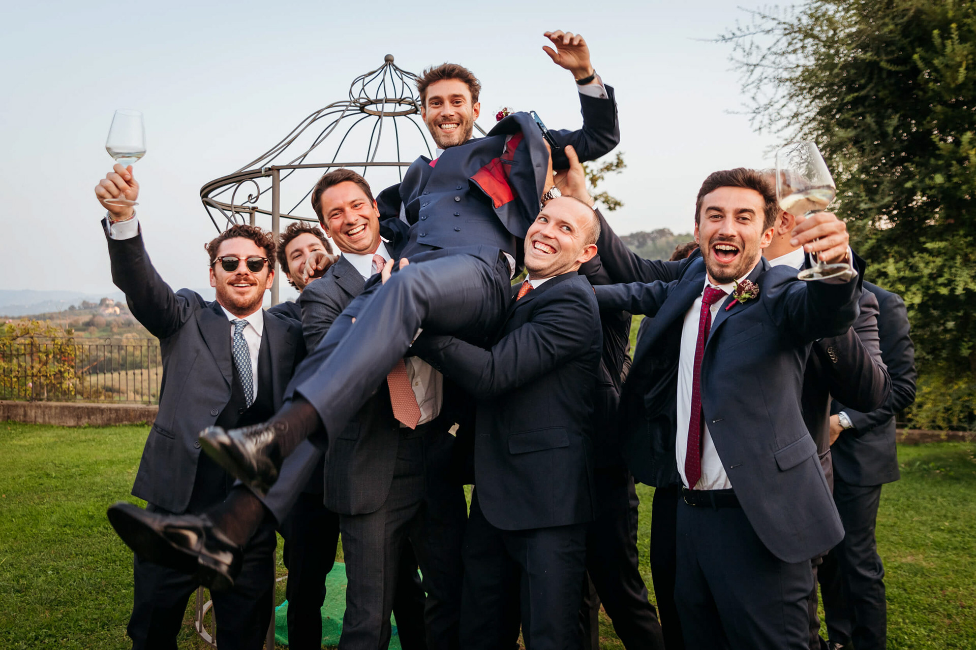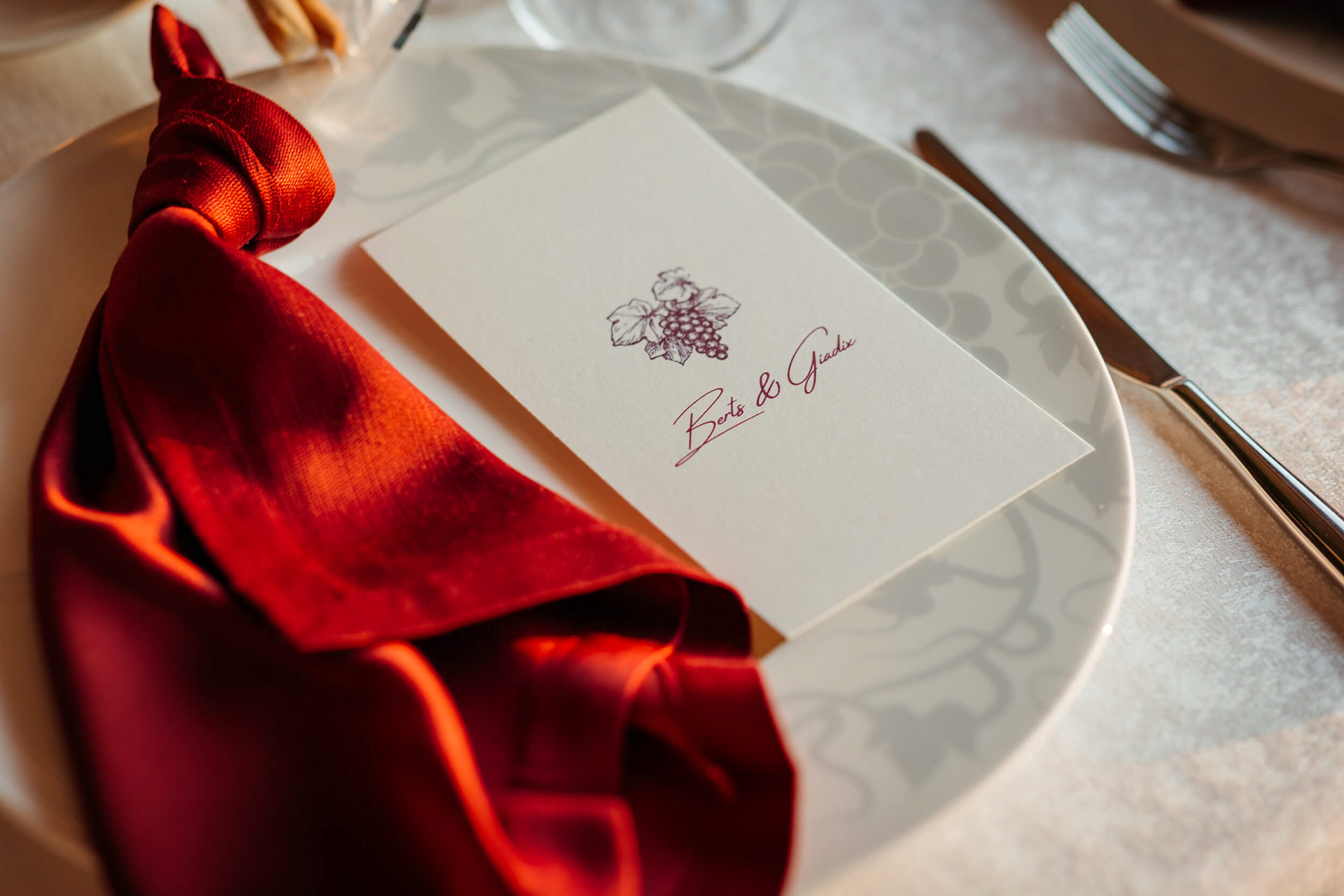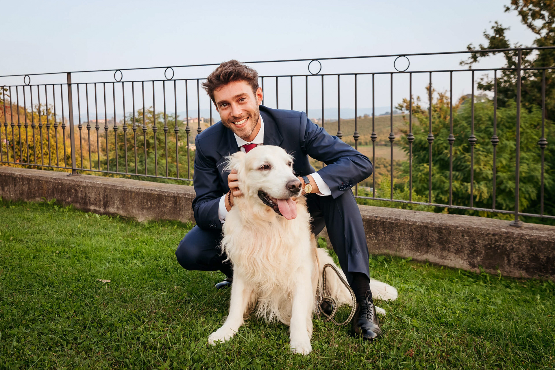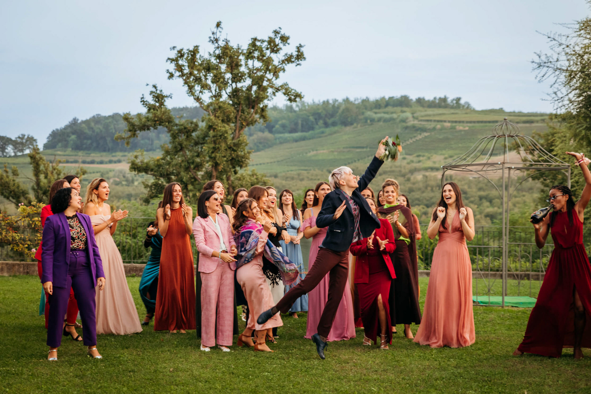 Dopo la cerimonia, la giornata è proseguita alla Tenuta Carretta, nelle Langhe, tra ritratti e passeggiate tra le vigne, mentre la luce del tramonto scendeva lentamente sul paesaggio.