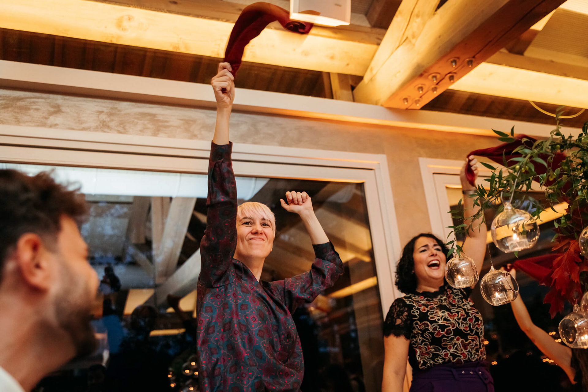 Con il calare della sera, la giornata ha cambiato passo. La cena ha preso forma in un clima sempre più vivo, fino a trasformarsi in una festa piena di musica, balli e brindisi continui, che ha chiuso la giornata con un’energia intensa e condivisa.