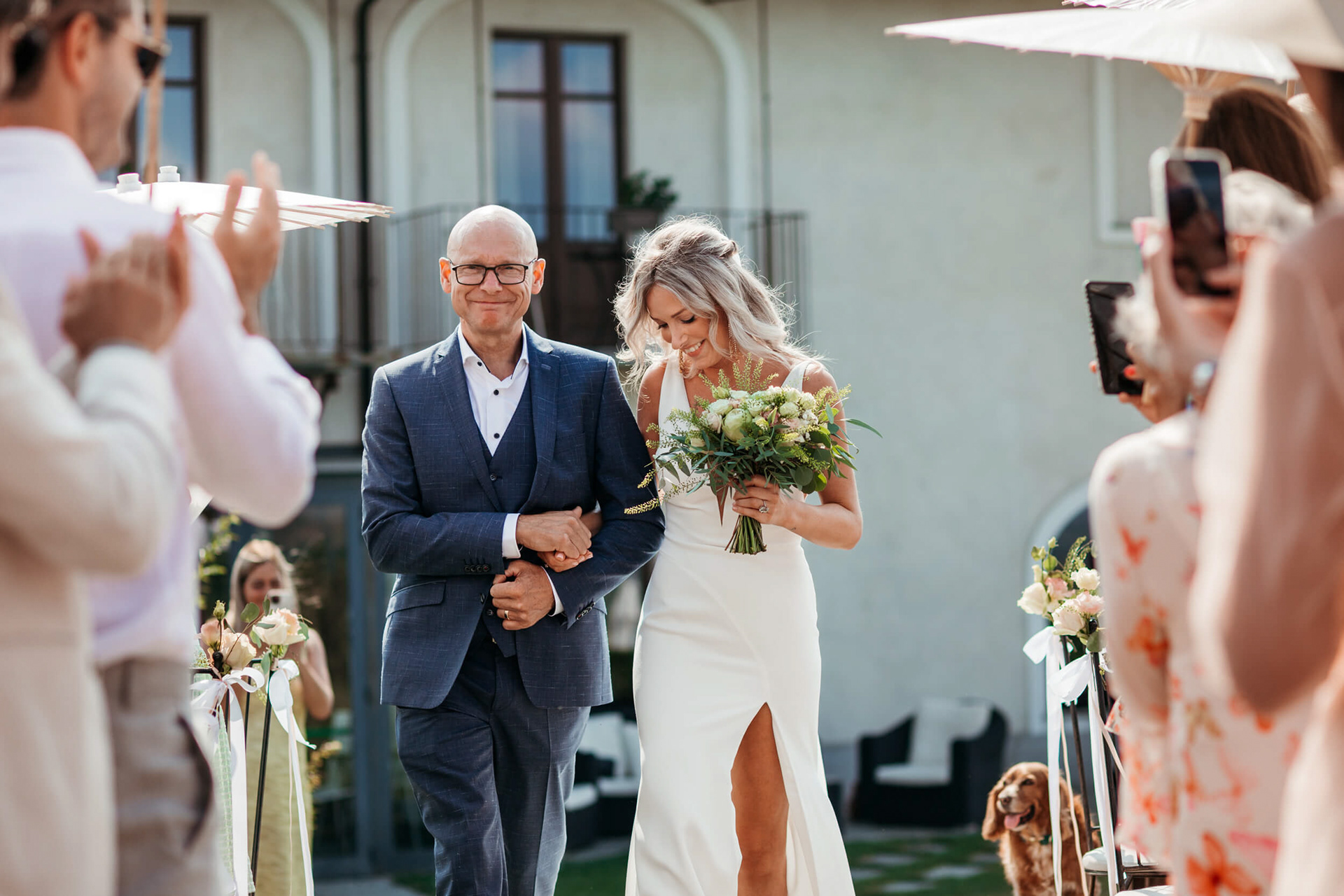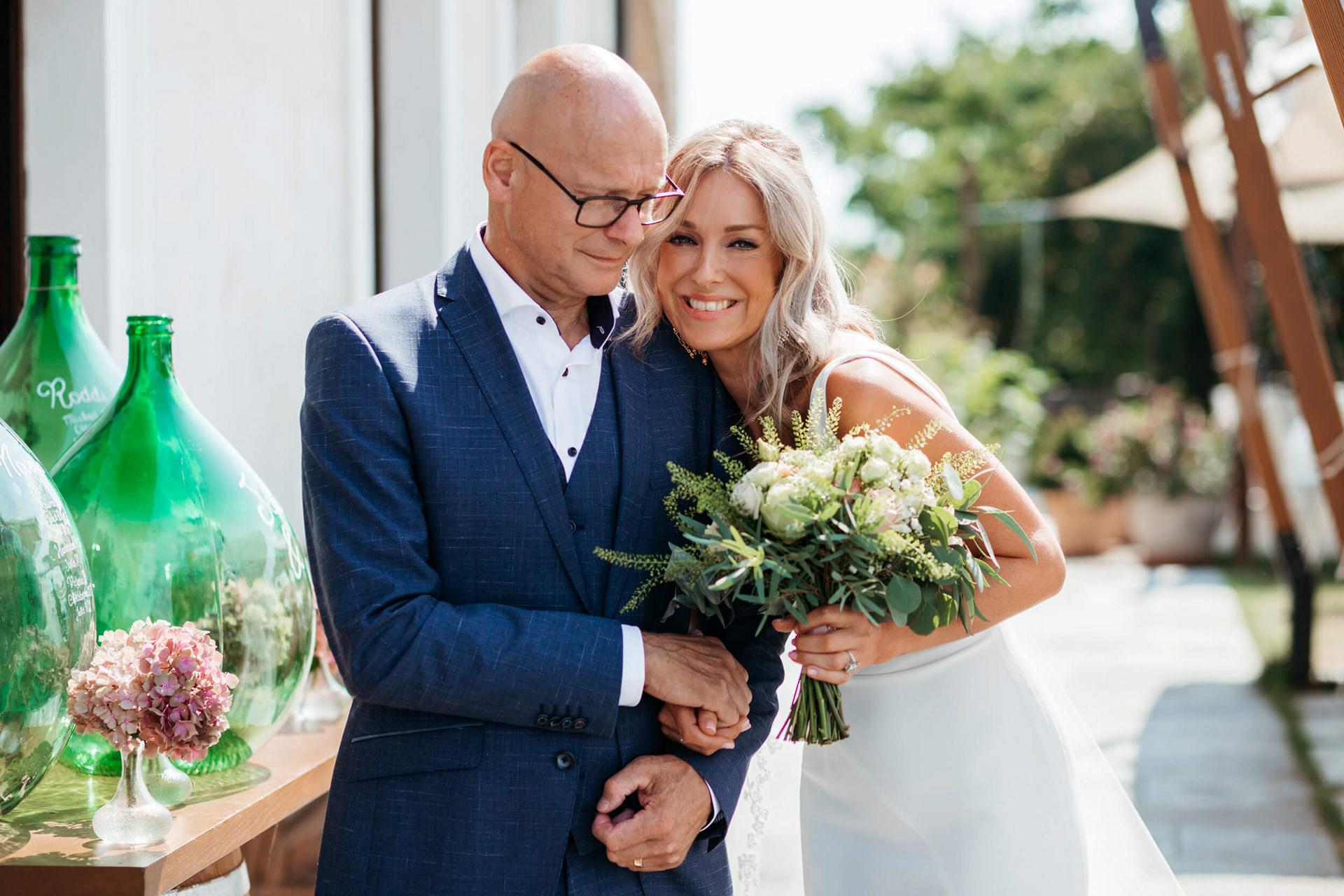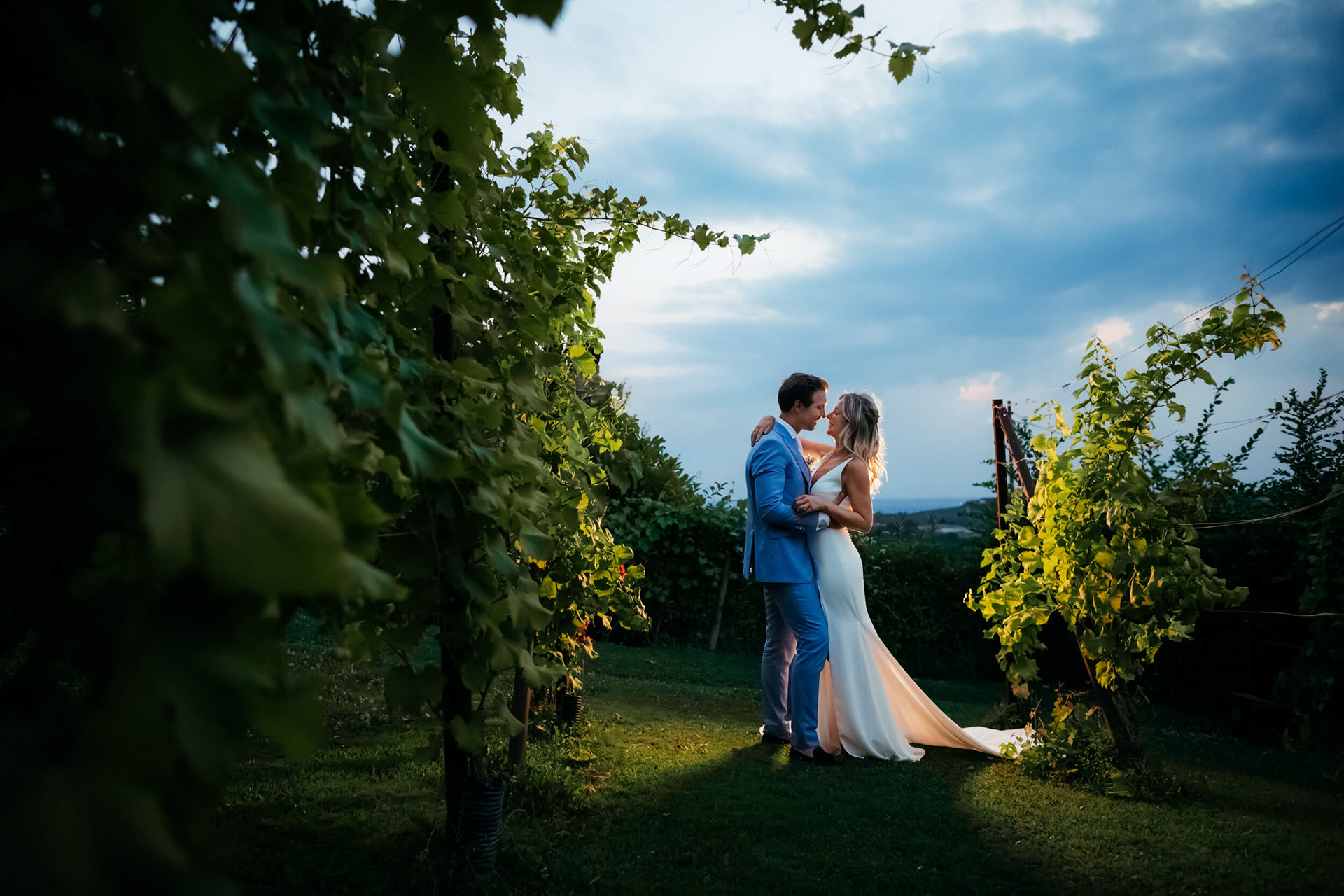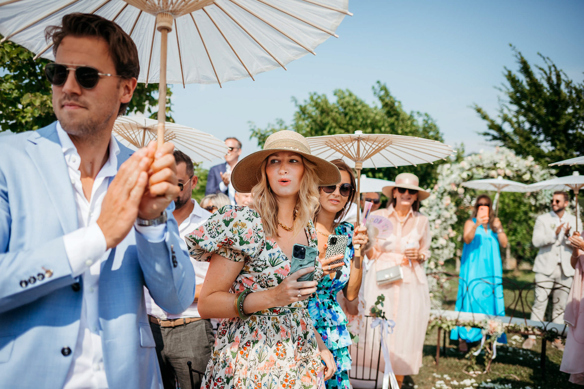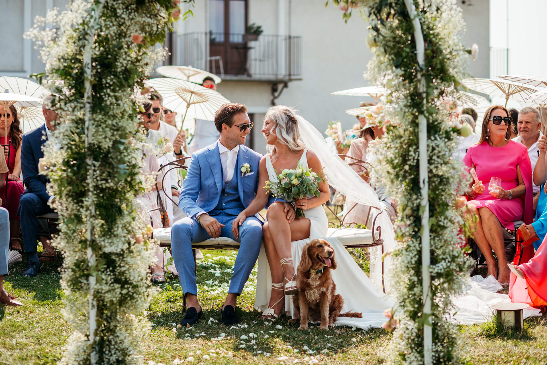 La vista aperta sulle colline, la luce piena e la vicinanza degli invitati hanno reso la cerimonia informale e autentica, vissuta senza rigidità.