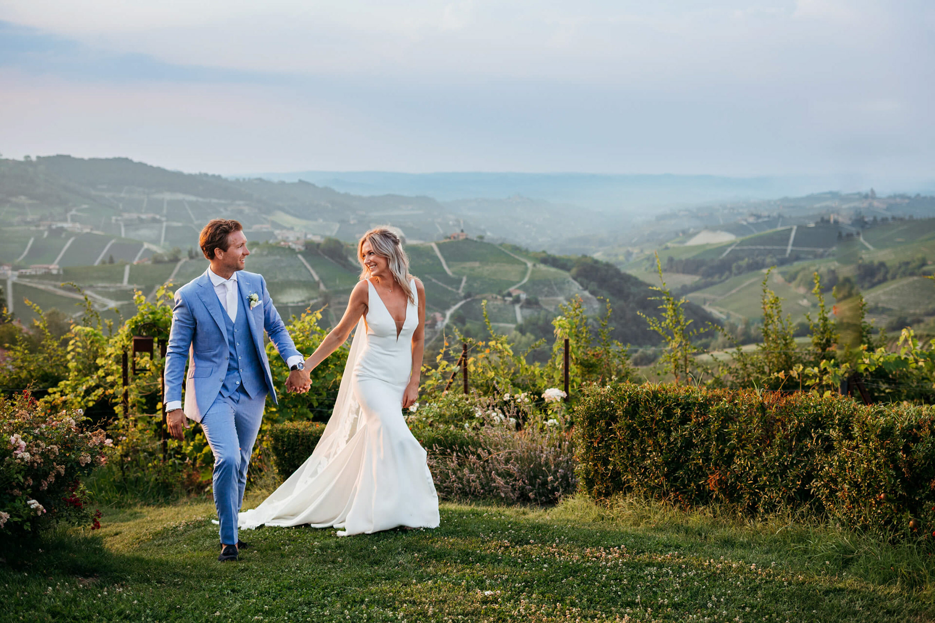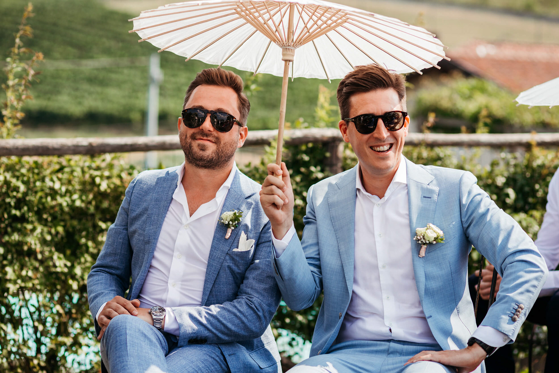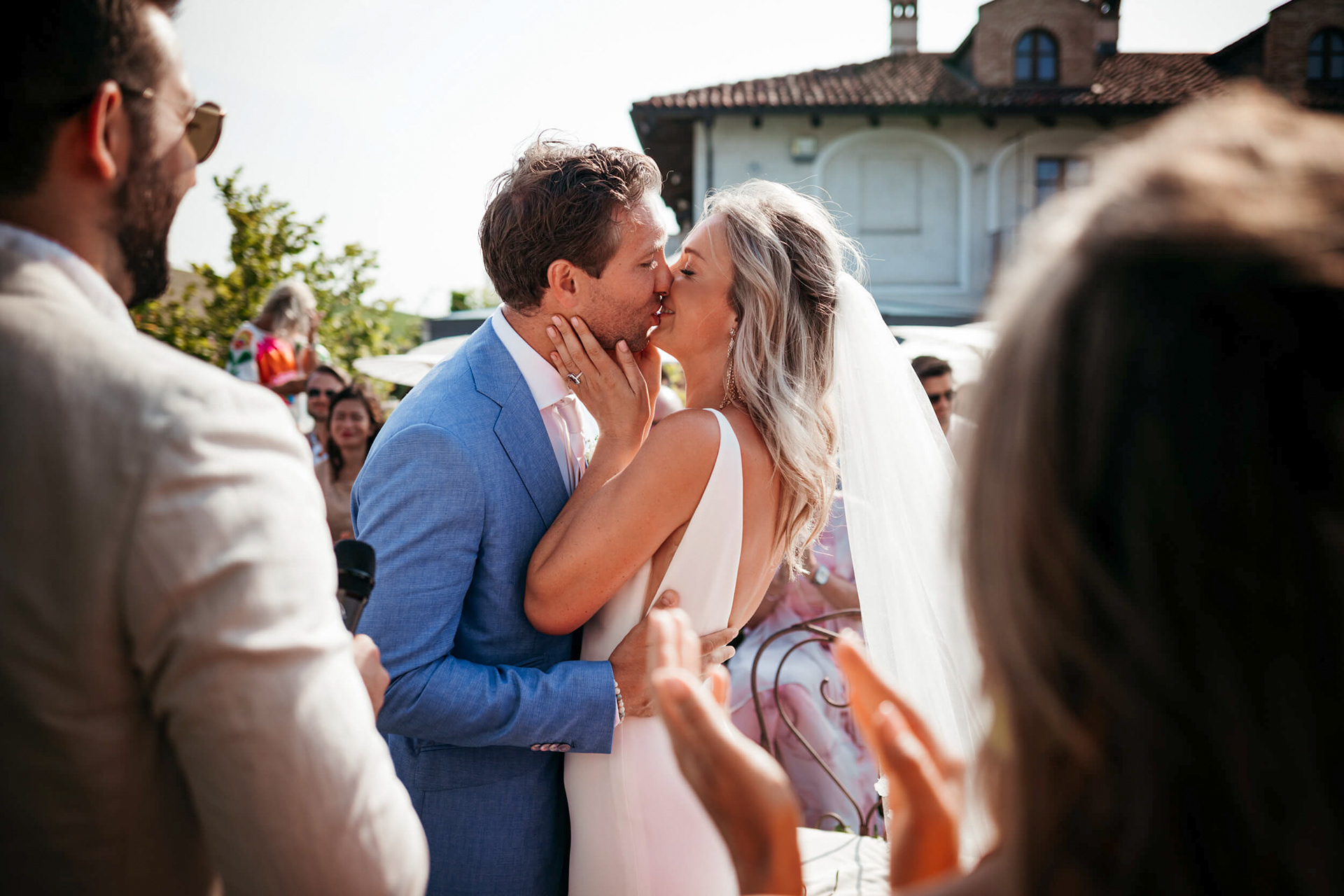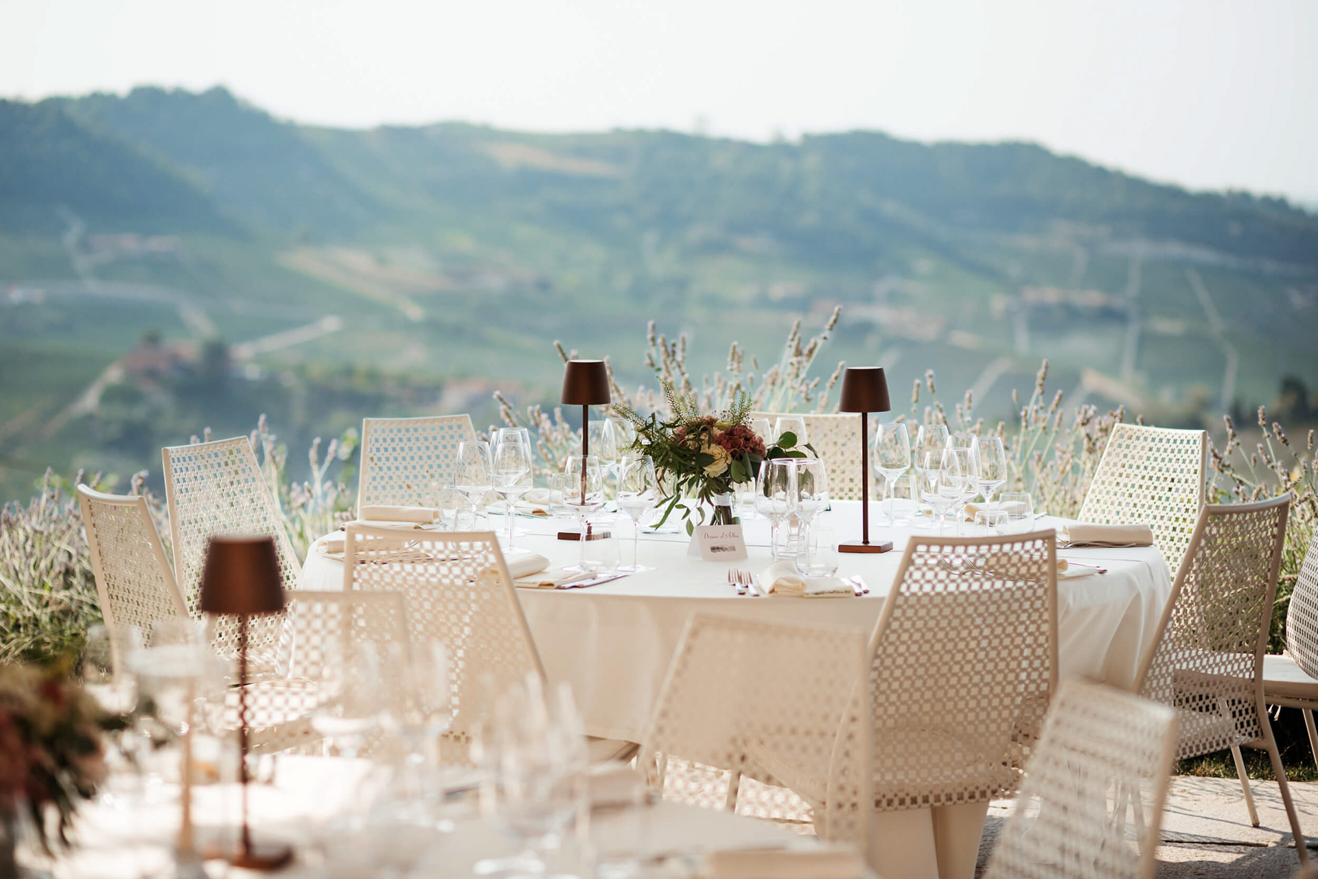 La giornata ha preso forma a La Torricella, affacciata su un panorama ampio e luminoso delle Langhe, che ha fatto da sfondo naturale a un rito semplice e condiviso.